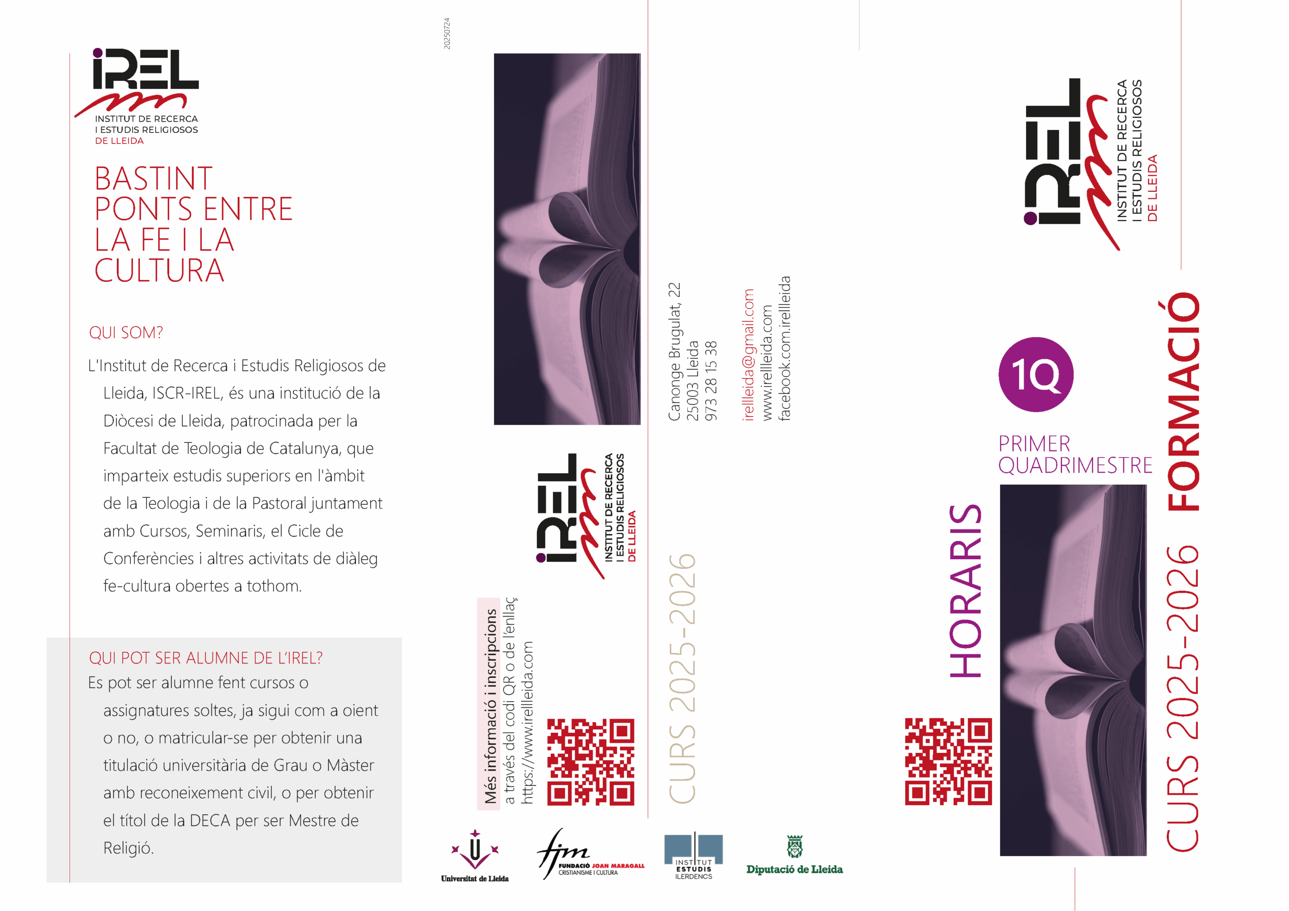 Ja hem publicat els horaris del 1r Quadrimestre de la formació per al curs 2025-2026 en format tríptic i podeu descarregar-la des de l’enllaç per si és del vostre interès.